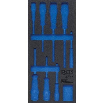 made of chrome vanadium steel tool tray made from high-resistance foam dimensions: 189 x 408 x 32 mm suitable for all BGS workshop trolleys suitable for BGS 4037 width: 189 mm | height: 32 mm | depth: 408 mm, Weight: 0.15873282864 pounds, Manufacturer: BGS