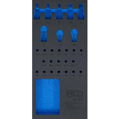 made of chrome vanadium steel tool tray made from high-resistance foam dimensions: 189 x 408 x 32 mm suitable for all BGS workshop trolleys suitable for BGS 4097 width: 189 mm | height: 32 mm | depth: 408 mm, Manufacturer: BGS