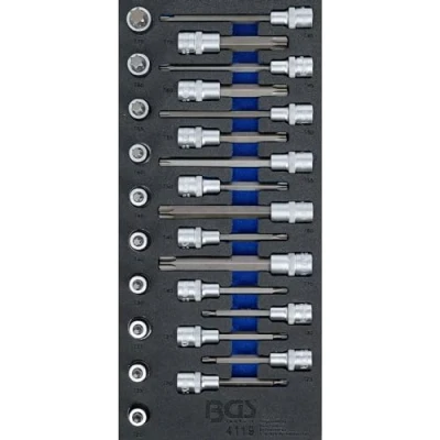 BGS 4119 Tool Tray 1/3: Bit Socket Set 12.5 mm (1/2") T Star (for Torx) 26 pcs.