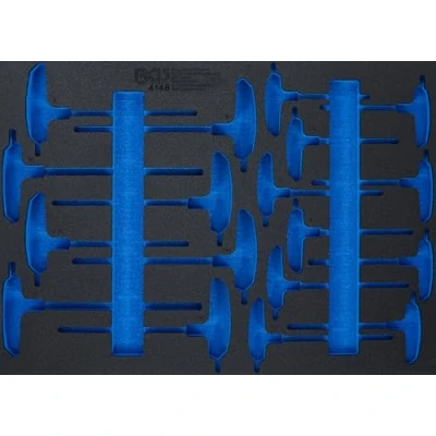 tool tray made from high-resistance foam the tools are protected in the hard foam tray and are stowed in the recesses in a non-slip manner each individual tool has its appropriate place for screwdriver set with T-handle, internal hexagon, T-Star (for Torx), 18 pcs. (BGS 4148) | suitable for all BGS workshop trolleys and system storage combination height: 32 mm | width: 567 mm | length: 408 mm, Weight: 0.67020527648 pounds, Manufacturer: BGS