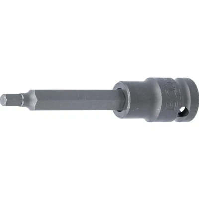 made of chrome vanadium steel | surface finish: black burnished suitable for both manual and impact wrenches | can be fixed on impact wrench by pin and O-ring output profile: internal hexagon | output profile size: 6 mm length: 100 mm | max. torque: 63 Nm drive profile: internal square | drive profile size, inch: 1/2 " | drive profile size, metric: 12,5 mm, Weight: 0.2425084882 Pounds, Manufacturer: BGS