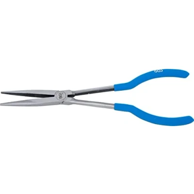 for gripping, adjusting and assembly work in hard-to-reach places low-lying workpieces are optimally reached with the slim, flat-round gripping tips universally applicable | straight gripping sleeves | safe handling due to pliers tips with serrated inner profile extra long tong legs | non-slip, dip-insulated handles material: carbon steel | length: 280 mm, Manufacturer: BGS