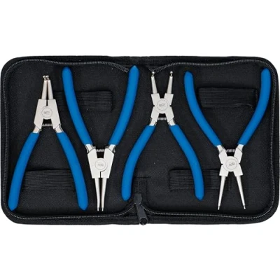 straight and bent tips for internal and external circlips non-slip cushion grip handles pliers tip Ø 1.5 mm packed in a solid vinyl wallet pliers for external circlips, angled, 150 mm, opening width max. 36 mm pliers for external circlips, straight, 150 mm, opening width max. 39 mm pliers for internal circlips, angled, 150 mm, opening width max. 31 mm pliers for internal circlips, straight, 150 mm, opening width max. 36 mm surface finish: nickel plated, Weight: 1.3889122506 pounds, Manufacturer: BGS technic