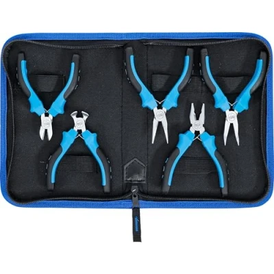 double spring loaded with insulated plastic bows in a black zipper wallet combination pliers 120 mm diagonal side cutters 115 mm bent nose pliers, straight, 130 mm bent nose pliers, bent, 125 mm end cutting pliers 105 mm, Weight: 1.322773572 pounds, Manufacturer: BGS technic