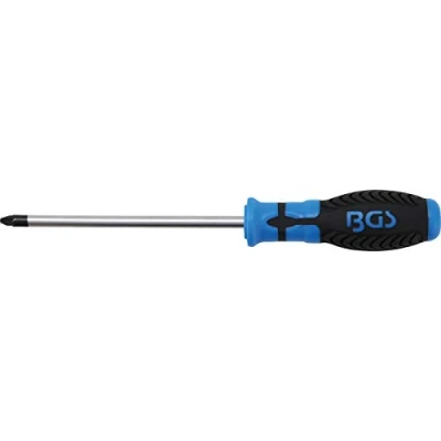 made of chrome molybdenum steel with black finished tips anti-slip 2-component handle profile: cross slot (PZ) PZ3 blade length: 150 mm, Weight: 0.3527396192 pounds, Manufacturer: BGS