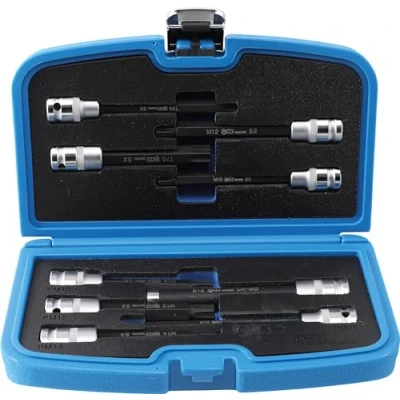 made of chrome vanadium steel knurled composition of all common bit sockets for cylinder head screws incl. spline profile for assembling and disassembling VAG polydrive cylinder head bolt screws 4 bit sockets, 12.5 mm (1/2") drive, spline (for Ribe): M10 x 165 mm - M12 x 120 mm - M13 x 120 mm - M14 x 120 mm 2 bit sockets, 12.5 mm (1/2") drive, spline (for XZN): M10 x 140 mm - M12 x 140 mm 2 bit sockets, 12.5 mm (1/2") drive, T-Star (for Torx): T55 x 140 mm - T70 x 120 mm 1 socket, 12.5 mm (1/2") drive, E-type: E12 x 140 mm material: chrome vanadium steel, Weight: 4.63852599248 pounds, Manufacturer: BGS