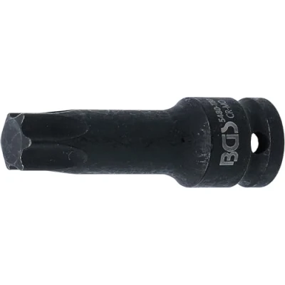 made of chrome molybdenum steel suitable for both manual and impact wrenches can be fixed on impact wrench by pin and O-ring 12.5 mm (1/2") drive T-Star (for Torx) T80 length: 75 mm, Weight: 0.3527396192 pounds, Manufacturer: BGS