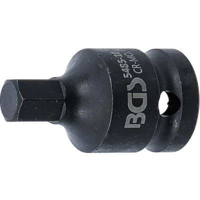 made of chrome molybdenum steel for both manual and impact wrenches | can be fixed on impact wrench by pin and O-ring output profile: internal hexagon | output profile size: 10 mm max. torque: 264 Nm | length: 42 mm drive profile: internal square | drive profile size, inch: 1/2 " | drive profile size, metric: 12,5 mm, Weight: 0.1763698096 Pounds, Manufacturer: BGS