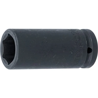 made of chrome molybdenum steel for both manual and impact wrenches can be fixed on impact wrench by pin and O-ring wrench size: 26 mm profile: chrome plated length: 90 mm surface finish: phosphated, Weight: 1.1684499886 pounds, Manufacturer: BGS