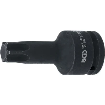 bit socket for T-Star (for Torx) screw heads suitable for both manual and impact wrenches can be fixed on impact wrench by pin and O-ring output profile: T-Star (for Torx) - output profile size: T100 - length: 100 mm, Manufacturer: BGS