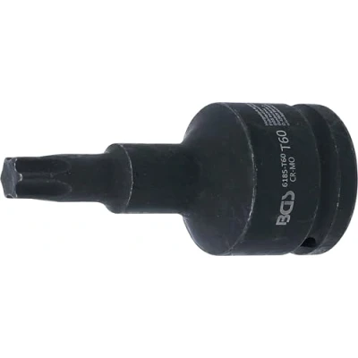 bit socket for T-Star (for Torx) screw heads suitable for both manual and impact wrenches can be fixed on impact wrench by pin and O-ring output profile: T-Star (for Torx) - output profile size: T60 - length: 100 mm, Manufacturer: BGS