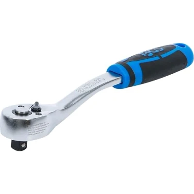 lever type offset finetooth 90 teeth with quick release function | non slip, ergonimical, 2-components handle rive: external square | drive profile size, metric: 10 mm | drive profile size, inch: 3/8" length: 205 mm | material: chrome-vanadium-steel | surface-finish: satin chrome plated, Weight: 0.66800065386 pounds, Manufacturer: BGS