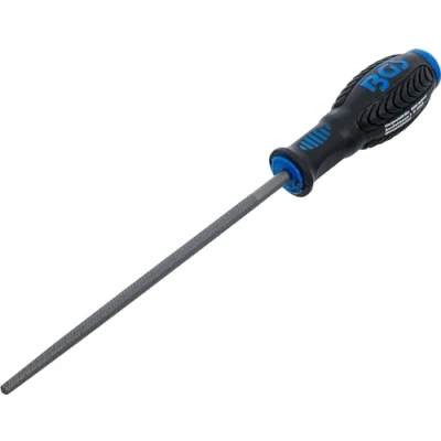 DIN 7261 - F 200 - 3 form F 3rd cut (fine) round file with framed cut labor saving file teeth universally applicable e.g. for surface machining, deburring etc. non-slip 2-component handle length: 200 mm (without handle), Manufacturer: BGS
