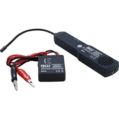 is used to detect / track cables and checking for short and open circuits a signal is fed into the circuit to be tested via the transmitter unit; this signal is detected by the receiver probe along side the cable and emitted by the receiver as an acoustic signal suitable for 12 andamp; 24 volts DC vehicle electrics receiver sensitivity adjustable scope of delivery: transmitter unit with test cables | receiver unit with flexible probe, Manufacturer: BGS technic