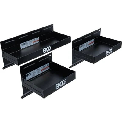3 shelves with strong magnet individually attachable sticks to all metal surfaces perfect storage box for tools, aerosol cans and other tools 1 storage compartment 145 x 115 mm, max. load capacity 1.2 kg 1 storage compartment 210 x 115 mm, max. load capacity 2.0 kg 1 storage compartment 310 x 115 mm, max. load capacity 3.0 kg