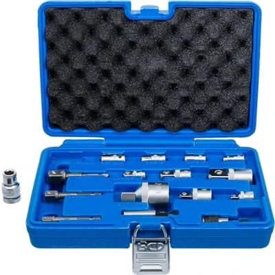 Material: Chrome Vanadium Steel / Chrome Vanadium Steel (S2) scope of delivery: 1 bit adaptor with retaining ball, 6.3 mm (1/4") Drive, internal Hexagon 6.3 mm (1/4") (BGS 8213) | 1 bit adaptor with retaining ball, 6.3 mm (1/4") Drive, internal Hexagon 8 mm (5/16") (BGS 8251) | 1 bit adaptor with retaining ball, 10 mm (3/8") Drive, internal Hexagon 8 mm (5/16") (BGS 292) | 1 bit adaptor with retaining ball, 10 mm (3/8") Drive, internal Hexagon 10 mm (3/8") (BGS 291) | 1 bit adaptor with retaining ball, 12.5 mm (1/2") Drive, internal Hexagon 10 mm (3/8") (BGS 290) 1 socket adaptor, internal square 6.3 mm (1/4") - external square 10 mm (3/8") (BGS 271) | 1 socket adaptor, internal square 10 mm (3/8") - external square 6.3 mm (1/4") (BGS 269) | 1 socket adaptor, internal square 10 mm (3/8") - external square 12.5 mm (1/2") (BGS 280) | 1 socket adaptor, internal square 12.5 mm (1/2") - external square 10 mm (3/8") (BGS 270) | 1 socket adaptor, internal square 12.5 mm (1/2") - external square 20 mm (3/4") (BGS 272) | 1 socket adaptor, internal square 20 mm (3/4") - external square 12.5 mm (1/2") (BGS 274) 1 electric drill adaptor, 6.3 mm (1/4") Drive / 6.3 mm (1/4") (BGS 9685-1) | 1 electric drill adaptor, 6.3 mm (1/4") Drive / 10 mm (3/8") (BGS 9685-2) | 1 electric drill adaptor, 6.3 mm (1/4") Drive / 12.5 mm (1/2") (BGS 9685-3) 1 magnetic bit-holder, extra strong, external hexagon 6.3 mm (1/4"), 60 mm (BGS 1727) | 1 bit-holder, internal hexagon 6.3 mm (1/4"), 60 mm, Weight: 2.32808148672 Pounds, Manufacturer: BGS technic