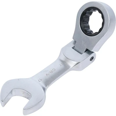 made of chrome vanadium steel ratchet is continiously adjustable up to 90° offset fine 72 tooth wrench size 1: 17 mm | wrench size 2: 17 mm length: 130 mm profile: 12-point surface finish: satin chrome plated, Weight: 0.4078551847 pounds, Manufacturer: BGS