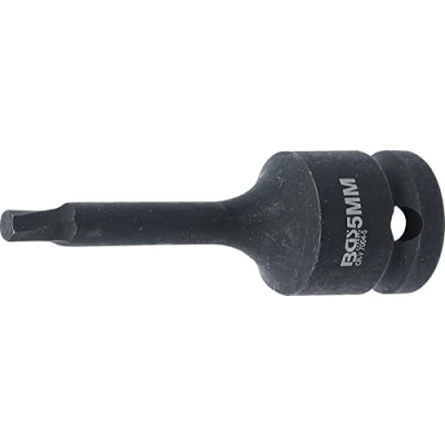for dismantling screws with defective internal hexagon socket screw heads for safe loosening of the drive profile that can no longer be operated or is damaged special, counterclockwise cutting thread with conical shape | for manual operation size: 5 mm | length: 78 mm | drive profile: internal square | drive profile size, metric: 12.5 mm | drive profile size, inch: 1/2" material: chrome vanadium steel | surface finish: black, phosphated, Weight: 0.20723452628 pounds, Manufacturer: BGS