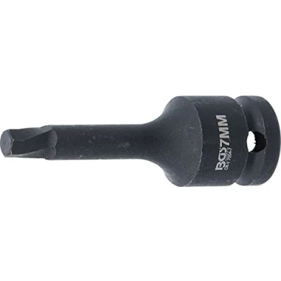 for dismantling screws with defective internal hexagon socket screw heads for safe loosening of the drive profile that can no longer be operated or is damaged special, counterclockwise cutting thread with conical shape | for manual operation size: 7 mm | length: 78 mm | drive profile: internal square | drive profile size, metric: 12.5 mm | drive profile size, inch: 1/2" material: chrome vanadium steel | surface finish: black, phosphated, Manufacturer: BGS