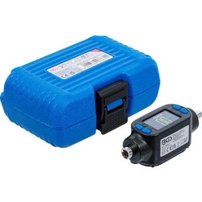 suitable for tightening screw connections according to the specified torque | can be used as a torque attachment with any drive element such as a conventional reversible ratchet | for controlled clockwise and counterclockwise tightening very high measuring accuracy, documented with a test certificate | large illuminated LCD display | display mode: Track (concurrent display) and Peak (peak value detection) with automatic switch-off function | reaching the desired torque is indicated by an acoustic signal (buzzer) | drive profile: internal square | drive profile size, metric: 6.3 mm | drive profile size, imperial: 1/4" | output profile: external square | output profile size, metric: 6.3 mm | output profile size, imperial: 1/4" torque range: 6 - 30 Nm | resolution: 0.1 Nm | accuracy: +/- 4% | dimensions: 125 x 35 x 40 mm| memory capacity: 50 data sets | operation modes: Peak andamp; Trace | unit selection: Kg-cm, Ib-in, Ib-ft, N-m battery: 1.5 V AAA (x 2) | operation temperature: -10 °C - 60 °C (13.9 °F - 139.9 °F) | storage temperature: -20 °C - 70 °C (-4 °F - 157.9 °F) | humidity: 15% - 90% | weight: 0.30 kg, Weight: 0.7054792384 pounds, Manufacturer: BGS