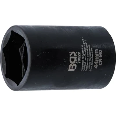 for professional loosening and tightening of the front, screwed-in wishbone ball joints (suspension joints) indispensable tool when replacing damaged or worn suspension ball joints suitable for: Toyota Proace, Toyota Proace Verso, Citroën Jumpy drive profile: internal square | drive profile size, metric: 12.5 mm | drive profile size, imperial: 1/2" output profile: hexagon | wrench size: 44 mm | length: 85 mm, Manufacturer: BGS