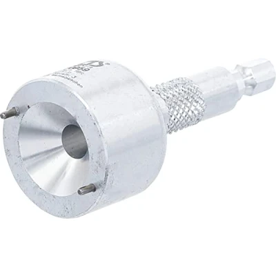 for easy and safe loosening and tightening of the clamping washers / star washers on the underfloor panel and heat protection plates suitable for vehicle models from Audi, Škoda, Seat, Volkswagen, Ford and other vehicle manufacturers suitable for clamping discs with original part numbers: VAG OE N90335004, N90335006, N90796501 | Ford OE 6715468 usable with cordless drill and drilling machine drive profile: external hexagon | drive profile size, metric: 6.3 mm | drive profile size, inch: 1/4" | output profile size: 2 pin | material: aluminum