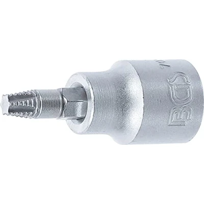 for dismantling screws with defective T-Star (for Torx) screw heads for safe loosening of the drive profile that can no longer be operated or is damaged special, counterclockwise cutting thread with conical shape | for manual operation | on metal rail drive profile: internal square | drive profile size, metric: 10 mm | drive profile size, inch: 3/8" material: chrome vanadium steel (S2) | surface finish: satin chrome plated, Weight: 0.08377565956 pounds, Manufacturer: BGS