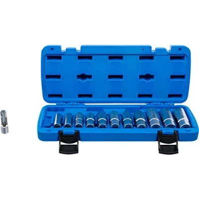 for assembling of top and side wired temperature sensors, thermo switches and other components | also suitable for nuts and bolts on bent pipes open 6-point drive profile | drive profile: internal square | drive profile size, metric: 10 mm | drive profile size, inch: 3/8" | material: chrome vanadium steel | surface finish: satin chrome plated scope of delivery: 1 special socket, slotted, 10 mm (3/8") drive, 10 mm, length 53 mm, slot width 7.1 mm (BGS 70988-8) | 1 special socket, slotted, 10 mm (3/8") drive, 10 mm, length 53 mm, slot width 8.2 mm (BGS 70988-9) | 1 special socket, slotted, 10 mm (3/8") drive, 10 mm, length 53 mm, slot width 7.5 mm (BGS 70988-10) | 1 special socket, slotted, 10 mm (3/8") drive, 10 mm, length 53 mm, slot width 8.7 mm (BGS 70988-11) | 1 special socket, slotted, 10 mm (3/8") drive, 10 mm, length 53 mm, slot width 9.3 mm (BGS 70988-12) 1 special socket, slotted, 10 mm (3/8") drive, 10 mm, length 62 mm, slot width 10.7 mm (BGS 70988-13) | 1 special socket, slotted, 10 mm (3/8") drive, 10 mm, length 62 mm, slot width 10.7 mm (BGS 70988-14) | 1 special socket, slotted, 10 mm (3/8") drive, 10 mm, length 62 mm, slot width 12.8 mm (BGS 70988-15) 1 special socket, slotted, 10 mm (3/8") drive, 10 mm, length 62 mm, slot width 13.1 mm (BGS 70988-16) | 1 special socket, slotted, 10 mm (3/8") drive, 10 mm, length 80 mm, slot width 13.2 mm (BGS 70988-17) | 1 special socket, slotted, 10 mm (3/8") drive, 10 mm, length 80 mm, slot width 13.7 mm (BGS 70988-18) | 1 special socket, slotted, 10 mm (3/8") drive, 10 mm, length 80 mm, slot width 15.0 mm (BGS 70988-19), Weight: 2.75136902976 pounds, Manufacturer: BGS