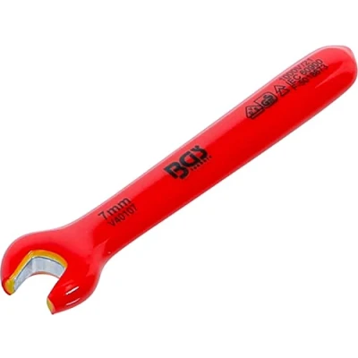 for safe working in the area of voltaged parts reduces the risk of short circuits | perfect tool for electricians and electrical specialists for installation of terminals and sleeves, conductor connections, screwing of busbars drop-forged | VDE insulated up to 1000 V, according to EN 60900/IEC 60900 | jaw opening: 15° DIN: EN/IEC 60900 | material: chrome vanadium steel | wrench size: 7 mm, Weight: 0.0440924524 pounds, Manufacturer: BGS