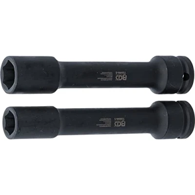 for removing and installing the nut on differential flange suitable for impact wrenches to be used as OEM 9996369, 9996785 drive profile: internal square | drive profile size, metric: 12.5 mm | drive profile size, imperial: 1/2" output profile: hexagon | output profile size 1: 15 mm | output profile size 2: 18 mm | length: 150 mm, Weight: 1.9400679056 Pounds, Manufacturer: BGS