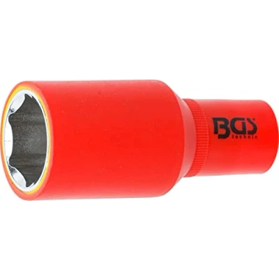 perfect tool for use in the range of electrical installations or for repair and maintenance work on hybrid and electric vehicles for safe working in the area of voltaged parts | reduces the risk of short circuits perfect tool for electricians and electrical specialists | VDE insulated up to 1000 V, according to EN 60900/IEC 60900 output profile: Pro Torque (hexagon) | drive profile: internal square | drive profile size, metric: 12.5 mm | drive profile size, inch: 1/2" material: chrome vanadium steel | surface finish: insulated | wrench size: 27 mm | DIN: EN/IEC 60900, Weight: 0.56438339072 pounds, Manufacturer: BGS