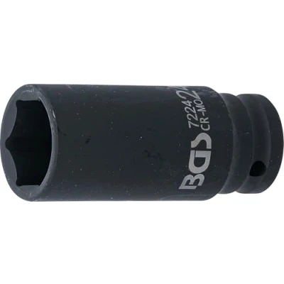 made of chrome molybdenum steel for both manual and impact wrenches can be fixed on impact wrench by pin and O-ring wrench size: 24 mm profile: chrome plated surface finish: phosphated length: 78 mm max. torque: 682 Nm, Manufacturer: BGS