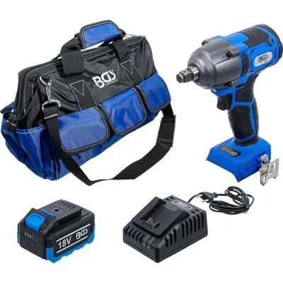 rechargeable batteries and chargers are interoperable with the BGS 18 V system - powerful, compact and cordless cordless impact wrench for applications in industry and workshops - with compact head length and excellent overall tool control - powerful, brushless motor ensures maximum performance with a longer operating time compared to conventional carbon brush motors - reversible clockwise - counter-clockwise rotation - with 3 speed - torque levels and a strong loosening torque, it is suitable for a wide range of applications - ergonomic design with soft grip for a secure hold and comfortable handling - has a powerful LED light with high illumination power for poorly lit working areas with practical metal belt clip can be fixed on the right or left as required - selectable torque levels for tightening: speed range 1: 0 - 1600 rpm (clockwise), speed range 2: 0 - 2000 rpm (clockwise), speed range 3: 0 - 2600 rpm (clockwise) - powerful lithium-ion battery - extra compact design - ensures efficient use and maximum operating time of the lithium-ion cells - rubberized base provides excellent grip when placing your machine on the workbench - with 3-stage charge level indicator - locking mechanism (locks the battery in the tool) - suitable for BGS 18 V system battery packs - for short charging times - with LED charging indicator housing made of impact-resistant plastic - universal tool bag suitable for storage and transport of cordless, hand and power tools - lightweight - with 10 external compartments, some of which can be closed, 8 internal compartments, 1 extra-large main compartment and 2 carrying handles - wide-opening top opening for easy access - removable carrying - shoulder strap with shoulder pad for easy transportation - reinforced, splash-proof at the basement with 4 protective pads - material: nylon 1680D - input voltage: 220 - 240 V AC - 50 Hz - input power: 105 W - output voltage: 21 V - charging current: 4.0 A - charging temperature: -10 - 50 °C protection class: II - power cord length: 1750 mm - accumulator type: Li-ion - nominal voltage: 18 V - accumulator power (electric charge): 4 Ah - working temperature: -10 - 50 °C - drive profile: external square - drive profile size, inch: 1 - 2" - drive profile size, metric: 12.5 mm - max. working torque: 400 Nm - direction of rotation: right - left - max. drive speed: 2600 rpm - number of strokes: 3300 BPM - max. sound pressure level: 71 dB(A) - max. sound power level: 84 dB(A) - vibration level (ahd): 6.2 m - s² - vibration level (K): 1.5 m - s², Manufacturer: BGS