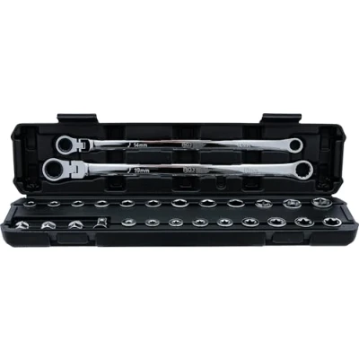 BGS 74274 Double Ring and Swivel Head Ratchet Wrench Set Extra Long 27 pcs.