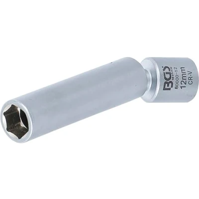 for damage-free disassembly and assembly of spark plugs and glow plugs | slim design with swivel joint suitable for use in hard-to-reach areas | with retaining rubber to prevent damage to the ceramic insulation drive profile: internal square | drive profile size, metric: 10 mm | drive profile size, inch: 3/8" material: chrome vanadium steel | surface finish: satin chrome plated output profile: Pro Torque (hexagon) | wrench size: 12 mm, Manufacturer: BGS