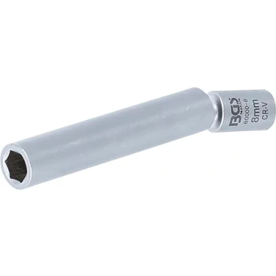 for damage-free disassembly and assembly of spark plugs and glow plugs | slim design with swivel joint suitable for use in hard-to-reach areas | with retaining rubber to prevent damage to the ceramic insulation drive profile: internal square | drive profile size, metric: 6.3 mm | drive profile size, inch: 1/4" material: chrome vanadium steel | surface finish: satin chrome plated output profile: Pro Torque (hexagon) | wrench size: 8 mm, Manufacturer: BGS