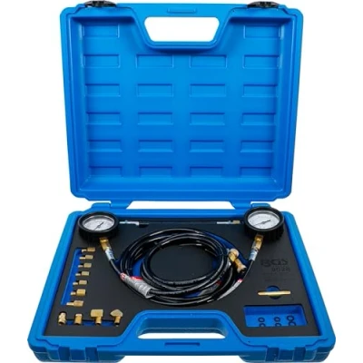for professional diagnosis of automatic gear mechanism | long test hoses allow test from the driver’s seat | suitable for the following automatic gears: VW, Mercedes-Benz, Honda, Hyundai, almost all series Audi, VW 003, VW 010, VW 097, almost all ZF gears | BMW Borg Warner 65, almost all ZF gears | Chrysler A-Series rear-wheel drive, 32, 36, 42, 44, 46 RH + RE, A-series rear, 42LE, KM series, F3A | AMC / Eagle A604/41, 42LE, KM series, W4A32-1 ZF gears (Eagle Premier), MB-1, AR4, MJS (Renault), AW-4 | Jeep A904, A999, A500, A518, A727, 30, 32RH Turbo HyDRY-Matic TH400 | Ford A4LD, AOD, AXOD, ATX, C3, C4, C5, C6, AODE, E40D, 4R70W, 5R55E, AOT, Mazda gears 4EAT GM Turbo Hydra-Matic, AL60E, 4L80E, AT60E Aisin Warner MX-1 + MS-7, JATCO KF-100 | Isuzu Borg-Warner BW-35, AISIN Warner BW-35 JATCO F3A/F10, Hydra-Matic TH4L30E, 4L60E | Jaguar ZF gears, Borg-Warner 65, Hydra-Matic | Mitsubishi AISIN Warner, KM series, JATCO, torque Lite | Peugeot ZF gears, Mazda JATCO, Ford A4LD | Porsche 010 VW, ZF gears | Saab Borg-Warner 37, ZF gears | Toyota AISIN Warner A-20 + A-30, almost all models | Volvo AISIN Warner, Borg Warner, ZF gears scope of delivery: high-pressure pressure gauge 0 - 500 PSI (0 - 35 bar), diameter 60 mm, hose length: 350 cm | pressure gauge 0 - 100 PSI (0 - 7 bar) diameter 60 mm, tube length 200 cm | 230 mm hose adaptor 1/8-27 to 1/4", quick coupling Adaptor: 1/8-27 - M10x1.0, 1/8-27 - 1/16-27 NPT, 1/8-27 - 5/16-24 NF, 1/8-27 - M8x1.25, 1/8-27 - M8x1.0, 1/8-27 VW Audi, 1/8-27 - 1/8-28 BSPT | adaptor internal thread 1/8-27 - external screw thread 1/4-18 NPT | elbow: 1/8-27 - 90° + 1/8-27 - 45° | adaptor 1/8-27, length: 50 mm, Weight: 4.078551847 Pounds, Manufacturer: BGS