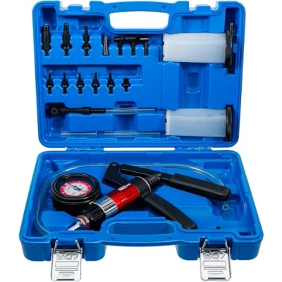 suitable for checking pressure and vacuum systems like boost pressure, vacuum solenoid valves, tank vents, MAP sensors, etc. also suitable for brake bleeding | not suitable for fuel system (petrol/diesel) 63.5 mm pressure / vacuum gauge | pressure indicator range: +0 to +3 bar vacuum indicator range: 0 to -0.9 bar | max. vacuum: -0.875 bar | max. pressure: 3 bar scope of delivery: 1 vacuum gun with suction and pressure functionSaug- und Druckfunktion | 2 collectiing containers | 14 adapters | 1 brake nipple adapter | 3 clear hose, short | 2 clear hose, long, Weight: 0.0220462262 pounds, Manufacturer: BGS