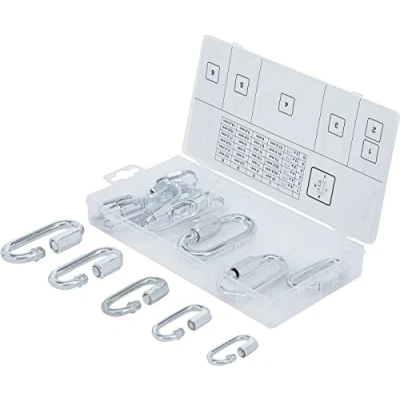 6 quick links 36 x 17 mm, Ø 3.5 mm 4 quick links 40 x 20 mm, Ø 4.0 mm 4 quick links 49 x 23 mm, Ø 5.0 mm 2 quick links 58 x 27 mm, Ø 6.0 mm 2 quick links 65 x 31 mm, Ø 7.0 mm 2 quick links 75 x 34 mm, Ø 8.0 mm, Manufacturer: BGS