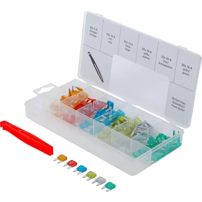 fuses colour-coded according to size in plastic storage case 20 fuses MINI 5 A 20 fuses MINI 10 A 20 fuses MINI 15 A 20 fuses MINI 20 A 20 fuses MINI 25 A 20 fuses MINI 30 A MINI fuse puller, Weight: 0.3747858454 pounds, Manufacturer: BGS