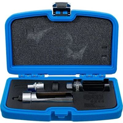 suitable for assembling and disassembling tightly fit common rail injectors suitable for e. g. Mercedes-Benz CDI engines 611, 612 and 613 suitable for working in confined spaces due to the low support cylinder diameter special tool construction allows to pull injector with high force 1 injector socket set, 12.5 mm (1/2") drive, internal hexagon 10 mm 1 protection ring for mounting under the pull-out sleeve 1 socket 29 mm, slot opening: 50 mm, drive: 22 mm 1 pulling spindle / pull-out sleeve, external hexagon drive: 21, 22 mm, slot opening: 85 mm, Weight: 2.3809924296 pounds, Manufacturer: BGS