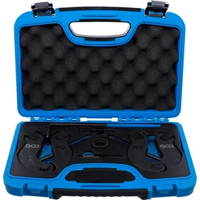 suitable for Audi A4, A6, A8 with engine codes ASN, AVK, BBJ for timing belt replacement and repair work on the engine easy mounting of the belt as camshaft and crankshaft are fixed 2 camshaft locking tool, to be used as OEM T40030 crankshaft locking tool, to be used as OEM T40026 tensioner pulley wrench, to be used as OEM 3387 socket for basic adjustment of the camshaft adjuster, to be used as OEM T40028 pins for clamping element, to be used as OEM T40011, Weight: 7.71617917 pounds, Manufacturer: BGS