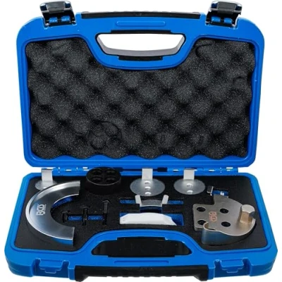 suitable for assembly and disassembly of elastic V-ribbed belts and double belt pulleys | for easy and professional belt replacement | prevents damage to the belt pulley and the belt with minimal effort scope of delivery: 1 engine rotation adapter, double-sided | 1 adapter for water pump suitable for Volvo and Ford | 1 adapter for crankshaft pulleys 2 straps attachment with 3 receptacles | 1 strap attachment with 1 receptacle | 3 spacers, length: 25, 40 and 65 mm | 1 belt expansion tool | 1 cover suitable for following models: BMW 118, 120, 318, 320, 325, 330, 335, 520, 525, 530, 535, 635, 720, X3, X5 | Audi A3 1.6/2.0D | Seat Altea, lbiza 1.6/2.0D | Skoda Octavia, Yeti 1.6/2.0D | Volkswagen Eos, Golf, Passat, Polo, Scirocco 2.0D | Chrysler Grand Voyager, Voyager 2.5D/2.8D | Ford C-Max, Focus, C-Max, Mondeo, Tourneo, Transit 1.4/1.6/1.8/2.0 Transit, Transit Tourneo 2.2D, Courier, Fiesta, Fusion 1.6 | Mazda 3, 5, Axela 1.8/2.0 and 2 1.2/1.4/1.6 model Mercedes Sprinter, Viano, Vito 3.0D | Peugeot 206, 207, 307, Boxer 1.6D/2.2D/3.0D | Citroen C2, C3, C4, Jumper, Relay 1.6D/2.2D/3.0D | Fiat Albea, Doblo, Ducato, Fiorino, Fiorino Qubo, Linea, Palio, Siena, Stilo, Strada Pickup 2.2D/2.3D/3.0D, Doblo, Marea, Multipla 1.6I, Iveco Daily 2.3D / 3.0D | Volvo C30, S40, V50 1.6/1.8/2.0 | Lancia Lybra 1.6 | Mitsubishi ASX 1.8D, Weight: 4.9824471212 pounds, Manufacturer: BGS technic