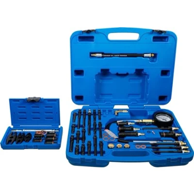 compression pressure testing up to 50 bar (725 psi) possible quick coupling in straight or angled version glow plug adaptors for the following brands: Alfa, BMW, Chrysler, Daewoo, Fiat, Ford, Hyundai, Isuzu, Land Rover, Mazda, Mercedes-Benz, Mitsubishi, Nissan, Opel, PSA, Renault, Saab, Suzuki, Toyota, VAG, Vauxhall and Volvo injector adaptors M20, M22, M24 and Stanadyne injectors for Ford spark plug adaptors M10, M12, M14 and M18 suitable for most cars, trucks, buses, agricultural and marine engines, Weight: 9.810570659 pounds, Manufacturer: BGS