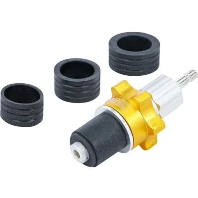 for quick adaptation spreading adaptor suitable for 30 - 50 mm openings fits on BGS 8027, 8027-1 and 8098 made of anodised aluminium 1 test adaptor, incl. rubber adaptor for Ø 30 - 35 mm 1 rubber adaptor for Ø 35 - 40 mm 1 rubber adaptor for Ø 40 - 45 mm 1 rubber adaptor for Ø 45 - 50 mm, Weight: 0.4629707502 pounds, Manufacturer: BGS