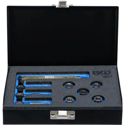 for repairing the glow plug mounting thread in the cylinder head 1 reamer for reaming the original thread 1 tap for threaded sleeves 1 tap for trimming the original thread 1 assembly tools for inserting the threaded sleeves 5 threaded sleeves, 11 mm long, internal thread M8 x 1.0 mm x external screw thread M10 x 1.0 mm, Weight: 0.9479877266 pounds, Manufacturer: BGS technic