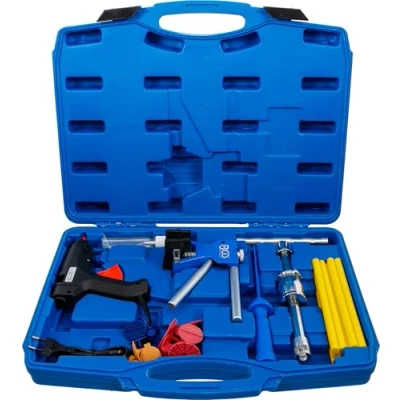 suitable for repair of minor dents painting and filling work are unnecessary no colour differences reduces time and cost scope of delivery: 1 hot glue gun | 9 dent pads in various sizes and shapes special adhesive glue sticks with very good performance sliding hammer for pulling out hard dents pulling unit with rubberized feet for slight dents on flat surfaces plastic scraper for gentle removal of dent pads, Weight: 8.38 pounds, Manufacturer: BGS