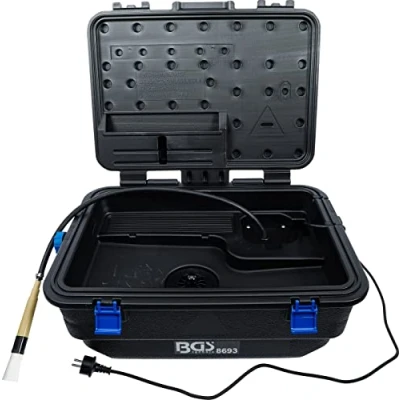 for cleaning of small parts cleaner brush is rinsed for best cleaning results suitable for all mildly alkaline, water soluble cleansers, e. g. universal cleaner, 5l BGS 9380 capacity: min. 15 litre material: high density polyethylene (HDPE) dimensions (W x D x H): 640 x 440 x 260 mm, Weight: 13.9773074108 pounds, Manufacturer: BGS