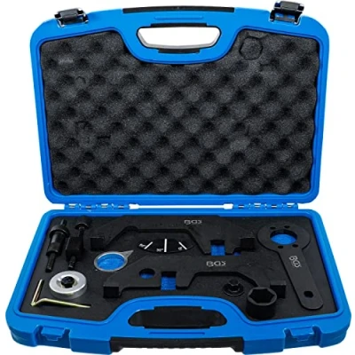 for checking and adjusting the engine timing suitable for the following BMW models: E60, E61, E63, E64, E65, E66, E53 | 540i, 545i, 550i, 645i, 650i, 735i, 740i, 745i, 750i, 760i, X5 with engines of the series: N62 B40A, B44A, B48B (manufactured between 2003 and 2010) | N62 B44A, B48B (manufactured between 2003 and 2010) | N62 B36A, B40A, B44A, B48B | N73 B60A (manufactured between 2002 and 2008) | N62 B44A, B48A (manufactured between 2003 and 2007) scope of delivery: timing chain tensioner, to be used as OEM 119340 | intake camshaft lock, to be used as OEM 119461 | exhaust camshaft lock, to be used as OEM 119462 | crankshaft lock, to be used as OEM 119451 | wheel segment, to be used as OEM 113460 | spacer, to be used as OEM 119452 | socket, to be used as OEM 119454 | special ring with pointer, to be used as OEM 119453 | crankshaft pin, to be used as OEM 119190, Weight: 10.141264052 pounds, Manufacturer: BGS