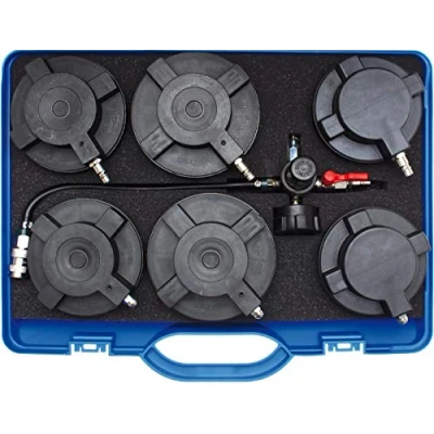 for checking the charging system components when installed suitable for turbochargers and compressor systems incl. pressure regulator with gauge for reducing the test pressure and for leakage test 3 pairs of test adaptor (test and closure cap) for hose Ø 105 - 110, 115 - 120, 125 - 130 mm, Weight: 9.33878141832 Pounds, Manufacturer: BGS